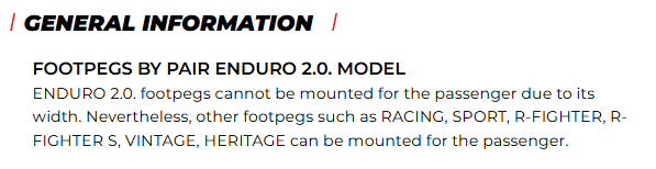 Footpegs compatible with all Puig rideradaptors.